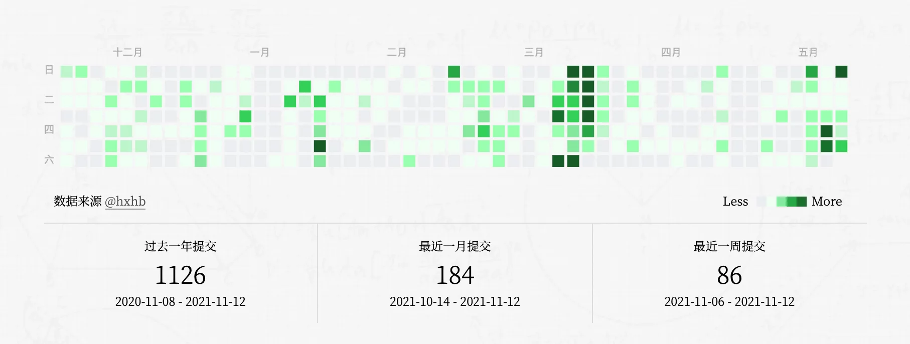 # color: "['#ebedf0', '#fafbfc', '#f6f8fa', '#e1e4e8', '#d1d5da', '#959da5', '#6a737d', '#586069', '#444d56', '#2f363d', '#24292e']" #浅灰色调