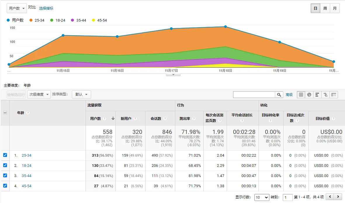 访客年龄,25-34是主力,35-呈现明显的下降趋势,技术人的中年危机?