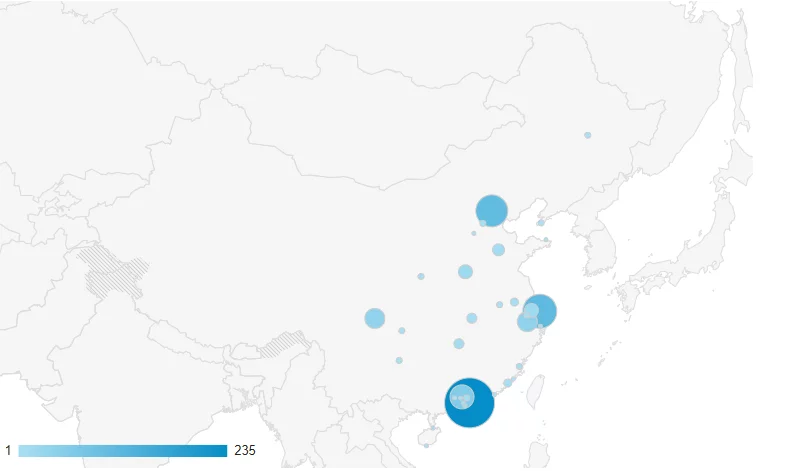 国内的访问情况,则主要分布在北上深为核心的东部沿海地区: