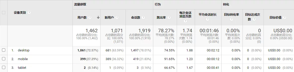 桌面用户远超移动端,看来很少有手机上看技术内容的习惯: