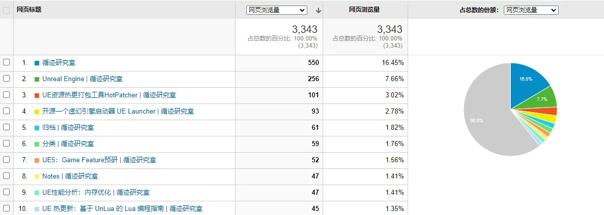 我的热更新方案系列的流量占比最大,其次是工程实践类的文章,新发表的文章有增量优势。