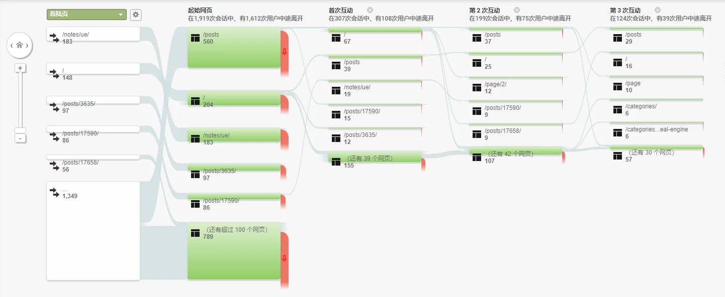 着陆页分析,访客在热门页面跳转到其他文章的情况: