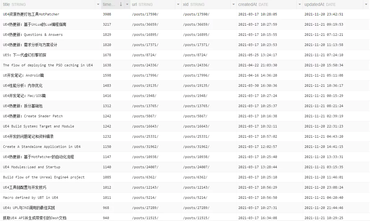 近期查看了博客Google Analysic的访问数据,通过流量分析发现一些很有意思的点,能够在一定程度上体现出在使用虚幻引擎进行游戏开发方面的用户特征。文章内的数据样本为本站2021.11.14-2021.11.20一周的访问流量,总体数据量有限不一定能体现出真实趋势,仅供参考。