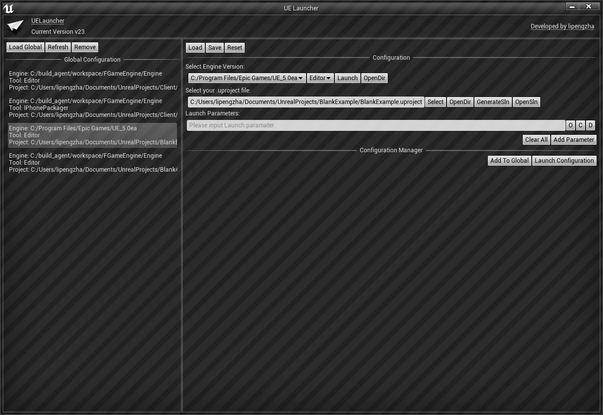 UE4Launcher是一个使用UE的Standalone Application的方式开发的独立程序,用来方便地切换引擎、启动项目、添加启动参数、保存配置,使用命令行通过配置启动,支持关联uproject文件,支持配置列表,是一个功能完备的启动器,可替代Epic Launcher作为本地引擎管理工具。