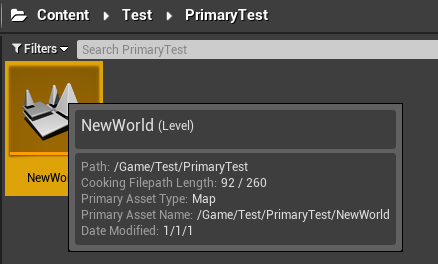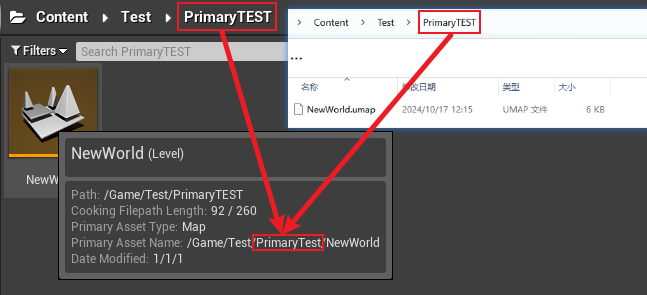 可以看到,工程中的目录产生了变化,但是资产中的PrimaryAssetName并没有变化。