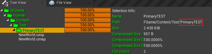举个例子,一个资源/Game/Test/PrimaryTEST/NewWorld,他被Cook后打进UFS的路径为: