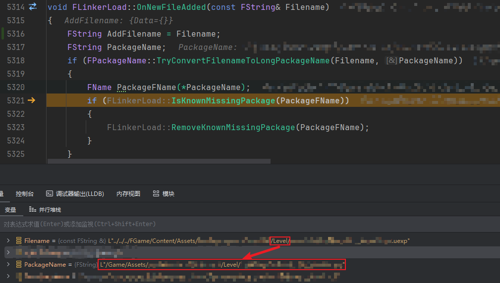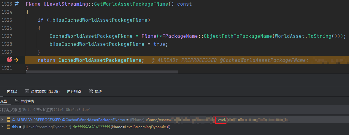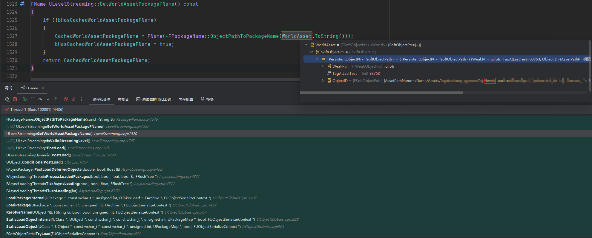 这里构造出了一个值为/Game/xxxx/Level/yyyyy的FName,该字符串已记录至NamePool。