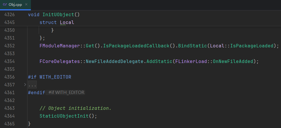 而对于Obj.cpp中的InitUObject函数的调用,则在PreInitPreStartupScreen调用到AppInit时。