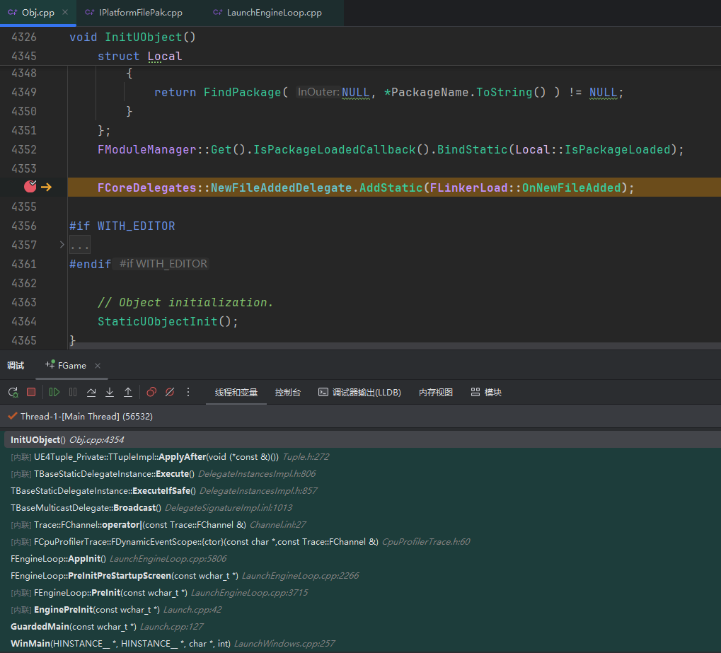绑定该代理的代码,在Obj.cpp中,绑上了FLinkerLoad::OnNewFileAdded: