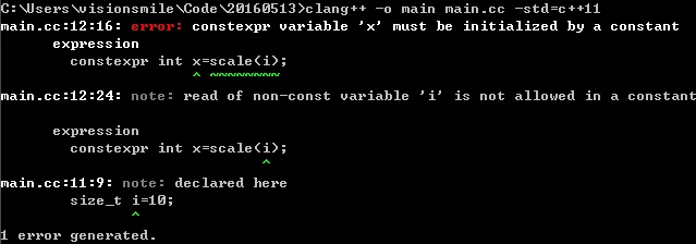 1 | // 如果scale接收的参数是一个常量表达式,则scale(const-parameter)也是常量表达式 |