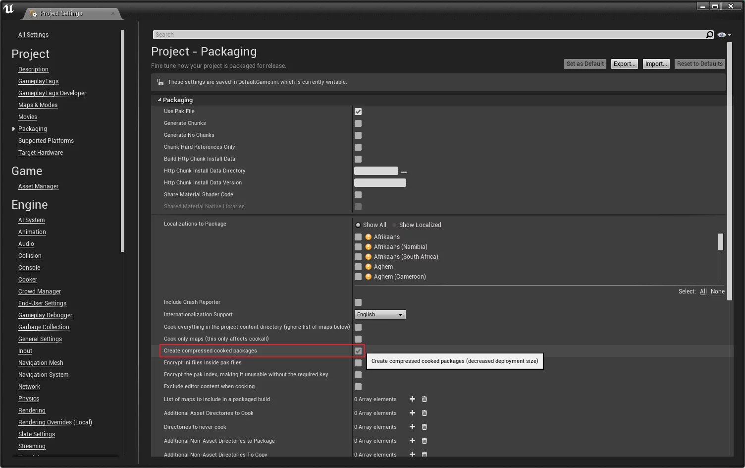 // Source/Editor/UnrealEd/Private/CookOnTheFlyServer.cpp(UE4.18.3) // need to subtract 32 because the SavePackage code creates temporary files with longer file names then the one we provide // projects may ignore this restriction if desired const int32 CompressedPackageFileLengthRequirement = bConsiderCompressedPackageFileLengthRequirements ? 32 : 0; const FString FullFilename = FPaths::ConvertRelativePathToFull(PlatFilename); if (FullFilename.Len() >= (PLATFORM_MAX_FILEPATH_LENGTH - CompressedPackageFileLengthRequirement)) { LogCookerMessage(FString::Printf(TEXT("Couldn't save package, filename is too long: %s"), *PlatFilename), EMessageSeverity::Error); UE_LOG(LogCook, Error, TEXT("Couldn't save package, filename is too long :%s"), *PlatFilename); Result = ESavePackageResult::Error; }