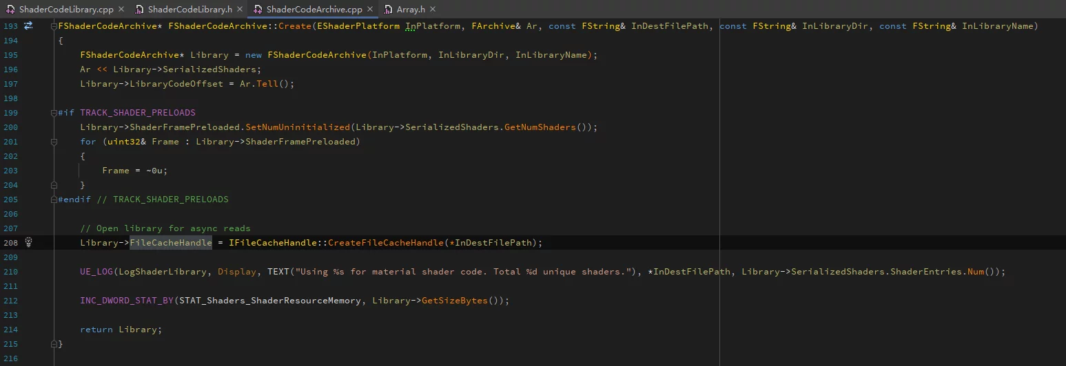 获取了ushaderbytecode的索引结构、版本号、以及文件句柄(FileCacheHandle),用于真实的ShaderCode加载。