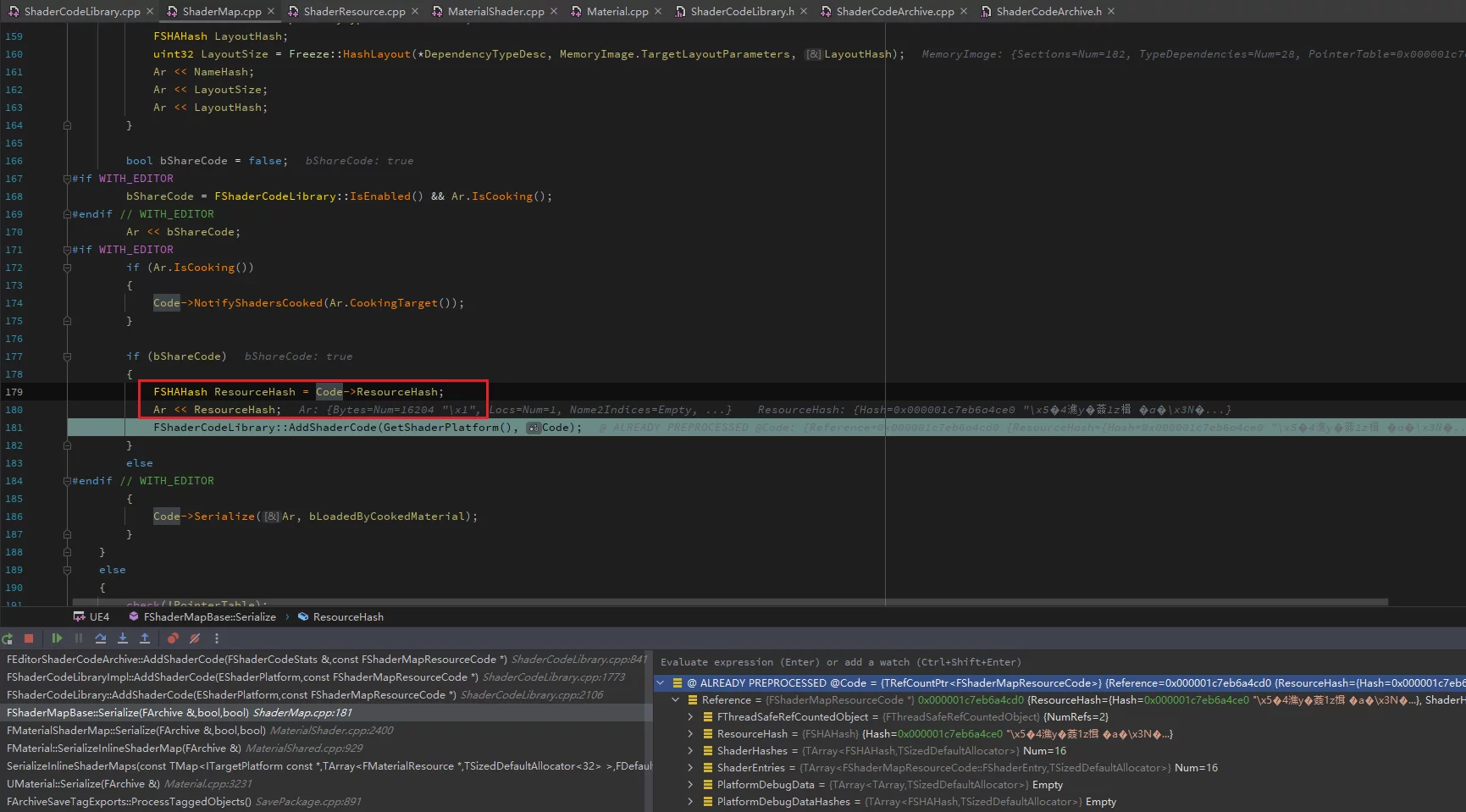 ushaderbytecode文件的序列化是在ShaderCodeLibrary中的FEditorShaderCodeArchive::Finalize中实现的。