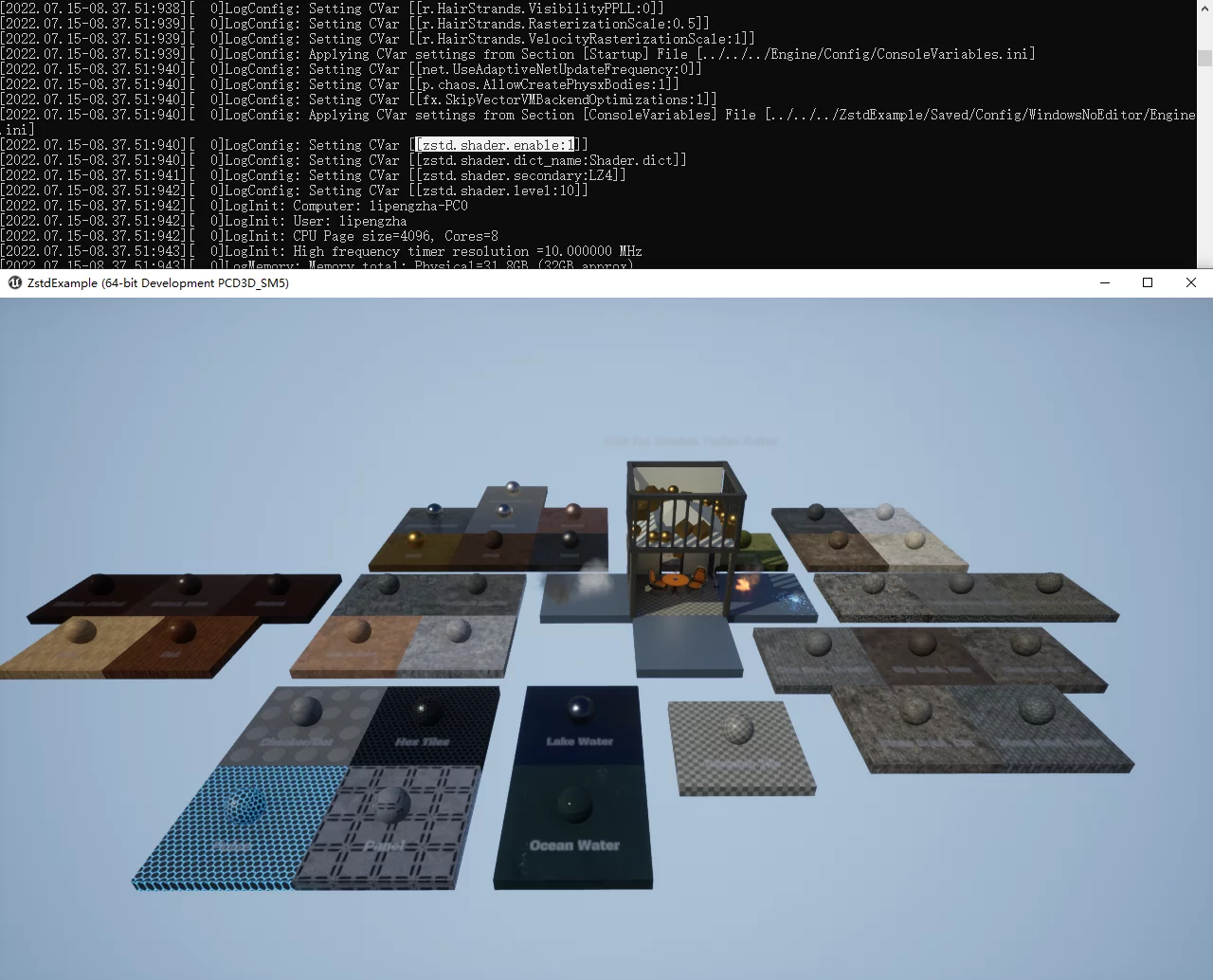 我提供了一个打包之后的运行时Demo,默认包是通过LZ4压缩的Shader,我提供了一个包含了字典、字典压缩之后的shaderbytecode(包含StarterContent与Global),可以用来验证功能和测试运行时效率。