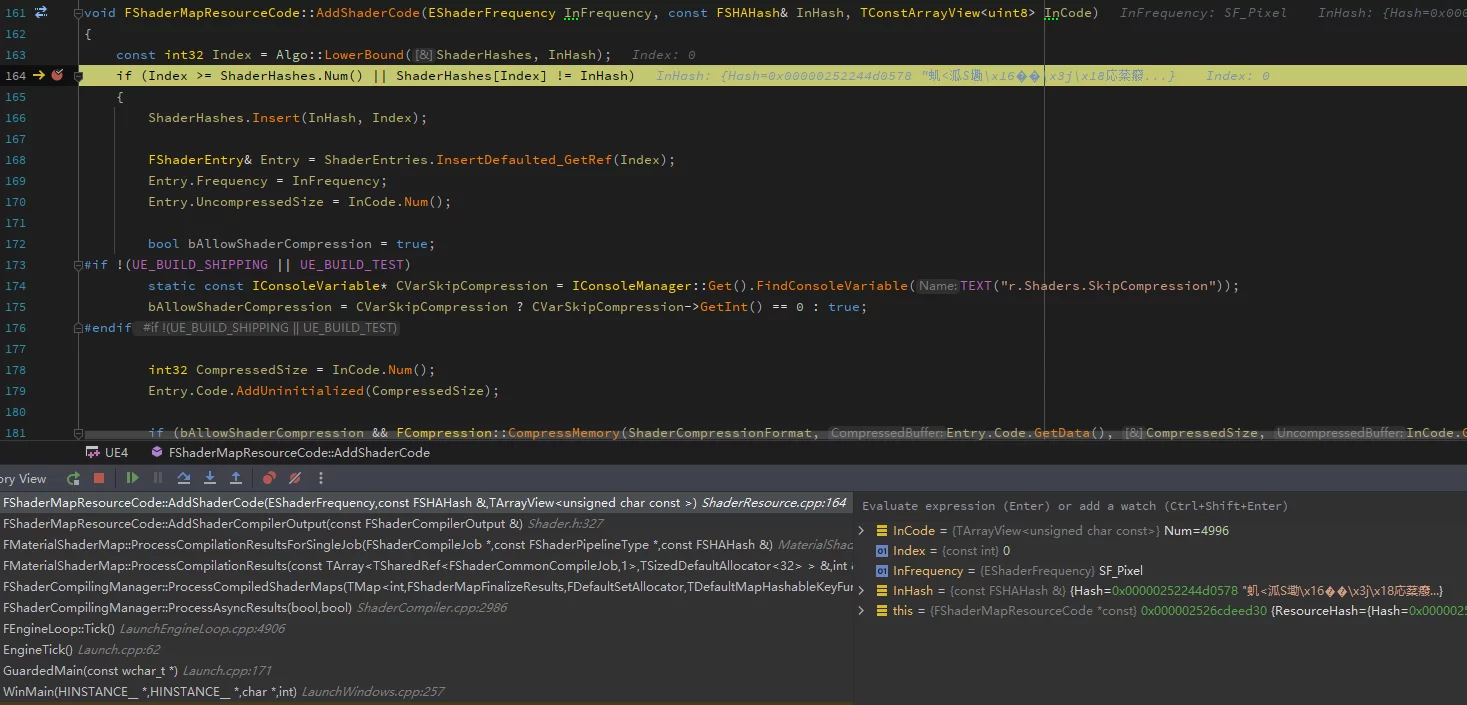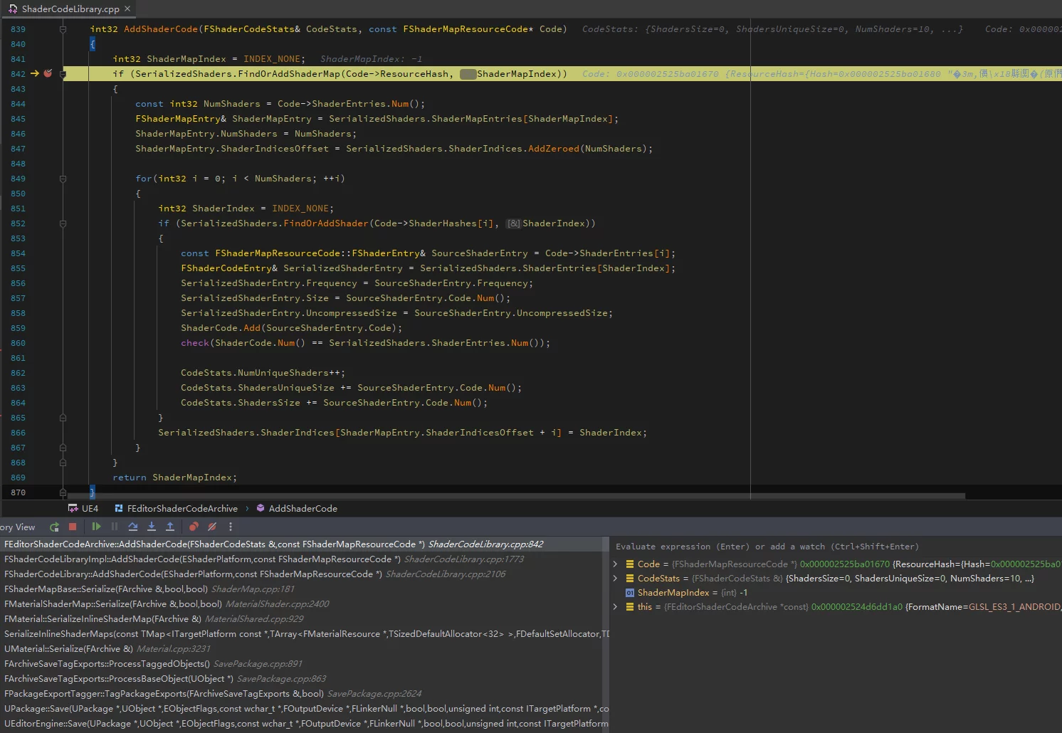 FShaderCodeLibrary::AddShaderCode时(序列化ushaderbytecode)![]()
