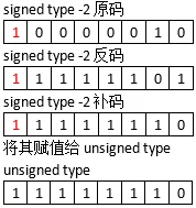 - signed到unsigned之间的转换:具有副作用(将负值赋值给unsigned类型)