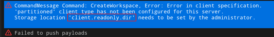 1 | SourceControl: Error: CommandMessage Command: CreateWorkspace, Error: Error in client specification. |
