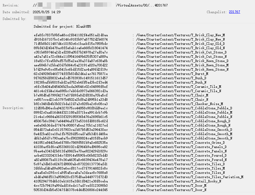 提交完之后,可以在p4上看到提交记录,以及每个hash与资产的对应关系: