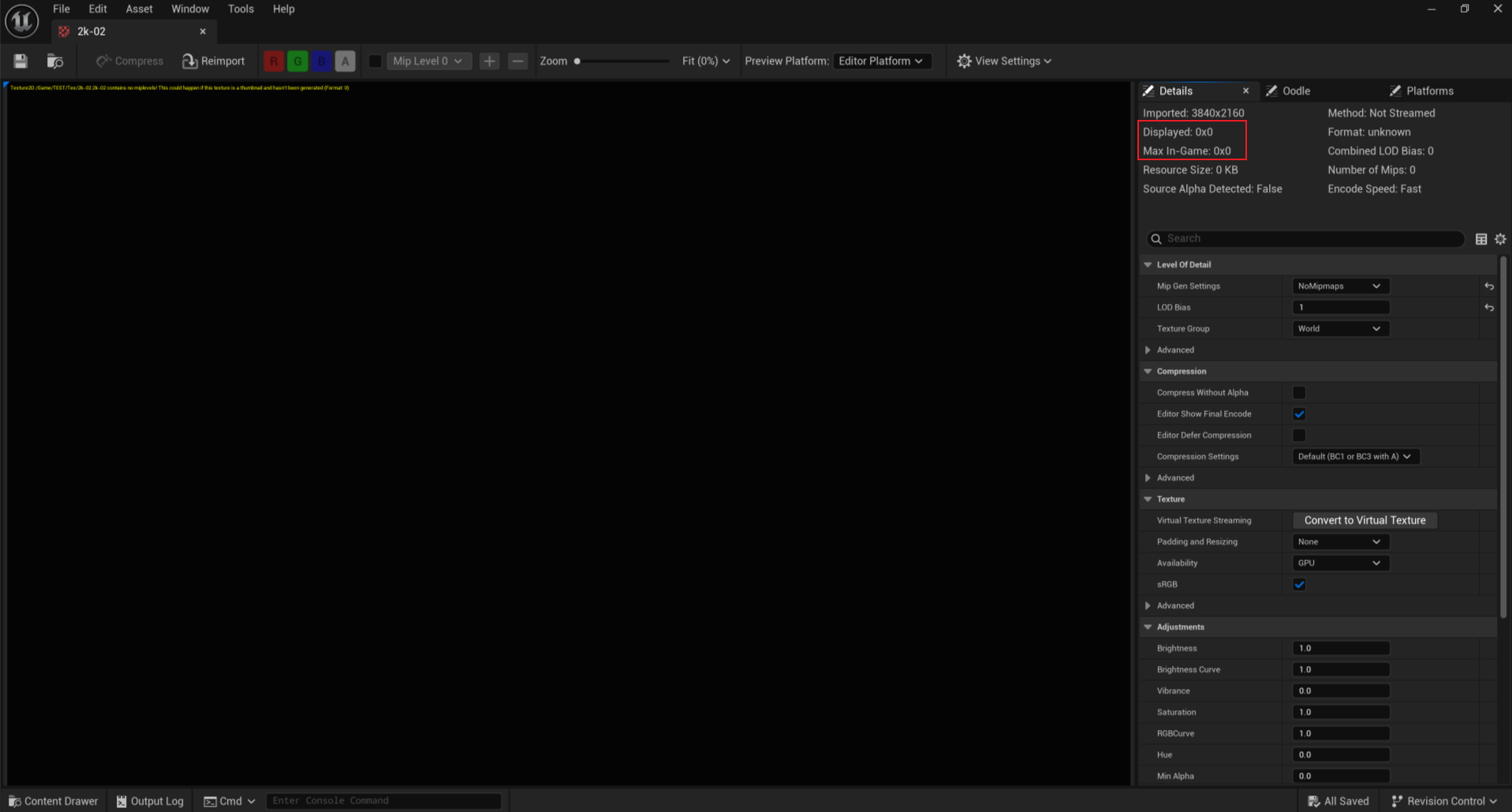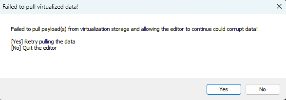 被动加载的资产也是这个逻辑(比如打开场景->加载模型->加载贴图),如果贴图的虚拟化数据无法加载,也会导致地图无法打开: