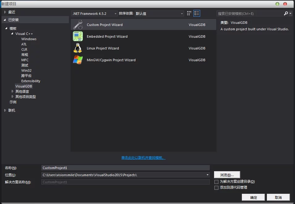 使用VisualGDB我们可以创建4种不同类型的项目: