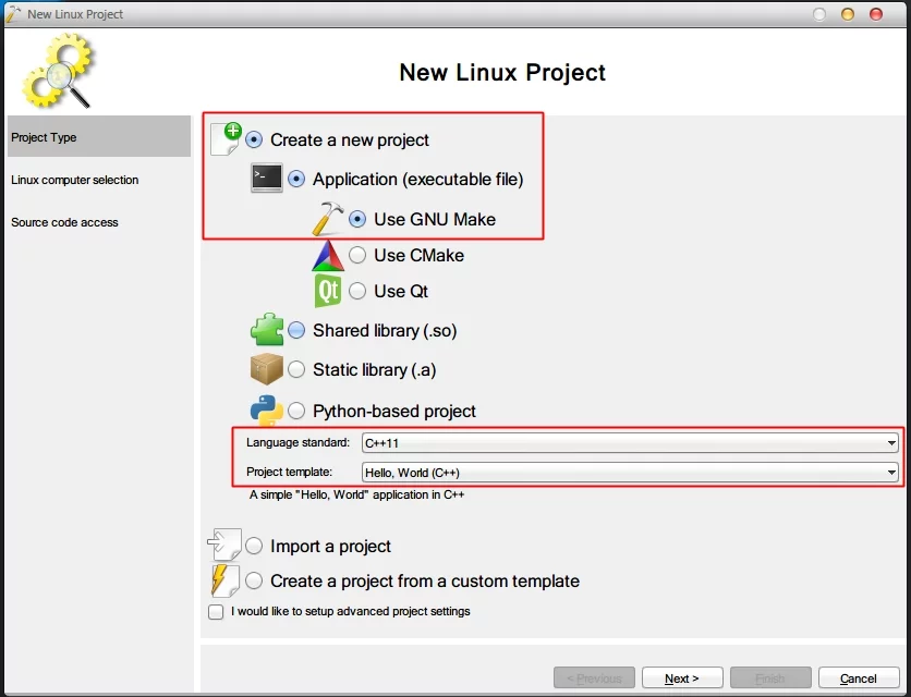 我用得到的只有后两种Linux Project Wizard和MinGW/Cygwin Project Wizard这两种项目。