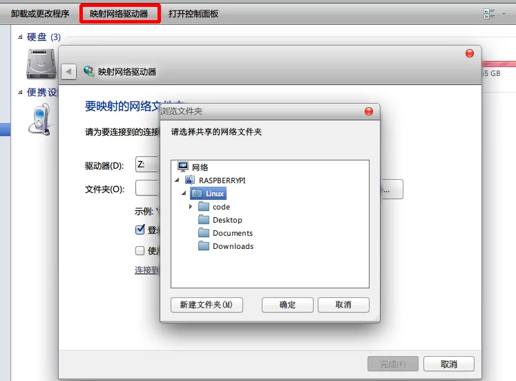 然后我们就可以在Windows下映射网络驱动器连接到共享的文件夹了: